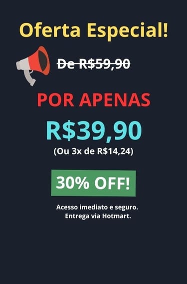 Sim. O pagamento é processado pela Hotmart, a maior e mais segura plataforma de produtos digitais da América Latina. Seus dados são protegidos e a entrega é garantida.